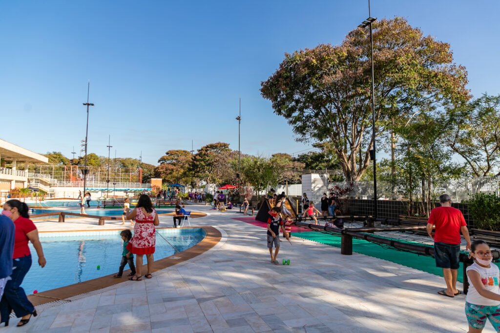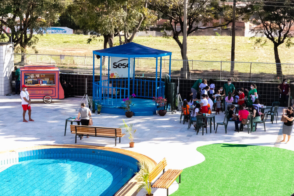 Ao longo de todo o mês de julho a área das piscinas ganha uma ambientação especial e se transforma em um espaço de convivência e lazer diferente do usual, resgatando algumas tradições de populações mais antigas que tinham nas praças um local de vivências e trocas.
