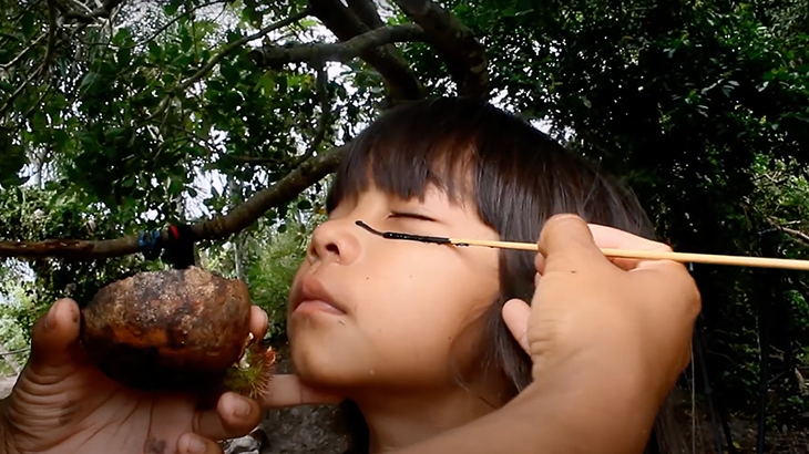 Nos vídeos da série “Conexão Aldeia Tapirema” sobre as pinturas corporais e os grafismos indígenas, os jovens Naron e Mimby nos convidam para conhecer um pouco mais sobre esta arte tradicional realizada por eles. Além das histórias, inspirações e significados dos grafismos utilizados, eles nos ensinam também quais as ferramentas necessárias para a produção das tintas e todo o processo realizado para extrair as cores mais utilizadas: o preto do jenipapo e o vermelho do urucum.