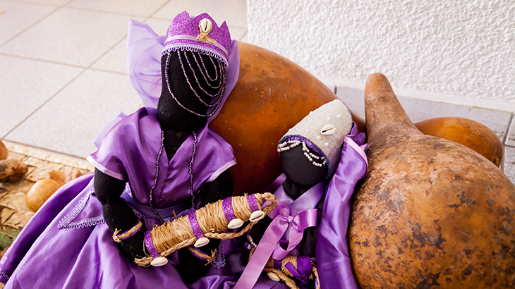 Para Brincar Entre o Céu e a Terra, tema da Semana Mundial do Brincar deste ano, a contadora tira de dentro da cabaça, as deusas Yabás e conta um pouquinho sobre o reino delas na natureza.