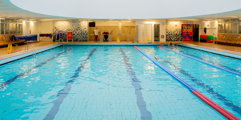 A Piscina é um dos espaços preferidos para quem busca espantar o calor! Além de ser utilizada para diversos cursos de práticas aquáticas, ela também é perfeita para recreação ou simplesmente relaxar.