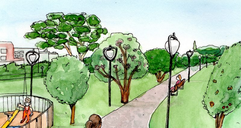 Para quem tem curiosidade de observar as cerejeiras o ano inteiro e de descobrir uma aceroleira entre as cerejeiras. As luminárias japonesas e as árvores nos levam para outros ares e a vista da cidade se estende longe, assim como o pôr do sol se apresenta com toda sua amplidão.