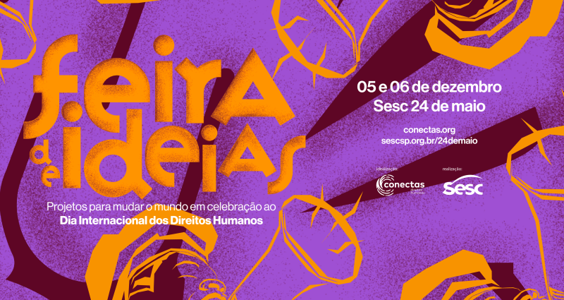 Estão abertas as inscrições para a apresentação de projetos para exposição na 8ª Feira de Ideias, iniciativa da Conectas Direitos Humanos, em parceria com o Sesc 24 de Maio, que celebra o Dia Internacional dos Direitos Humanos. O chamamento, lançado nesta quarta-feira (10), fica aberto até às 23h59 do dia 08 de outubro, quando se encerra o prazo para recebimento de propostas. As inscrições devem ser feitas por meio deste formulário.