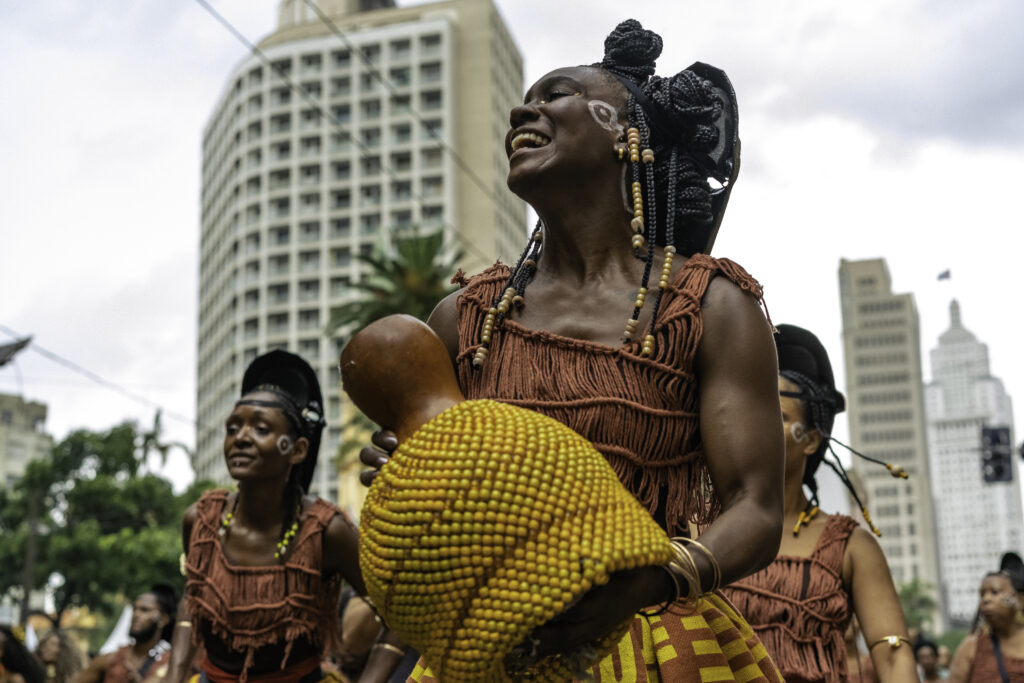É no contexto simbólico do axé que a alegria desponta como potência do sujeito. Alegria entendida como regência de afetos: a afinação (no sentido musical do termo) de todos os sentidos, que se faz reconhecer pelos sentimentos de júbilo, regozijo e gozo. Ela surge de um tempo próprio, como na celebração festiva, quando a alma ganha autonomia e força diante das agruras físicas e mentais. Nela o real não emerge da temporalidade abstratamente criada pelo capitalismo absoluto que hoje satura a existência humana de conexões velozes. Emerge, sim, da singularidade das coisas, no aqui e agora do mundo, como força vital do povo.
