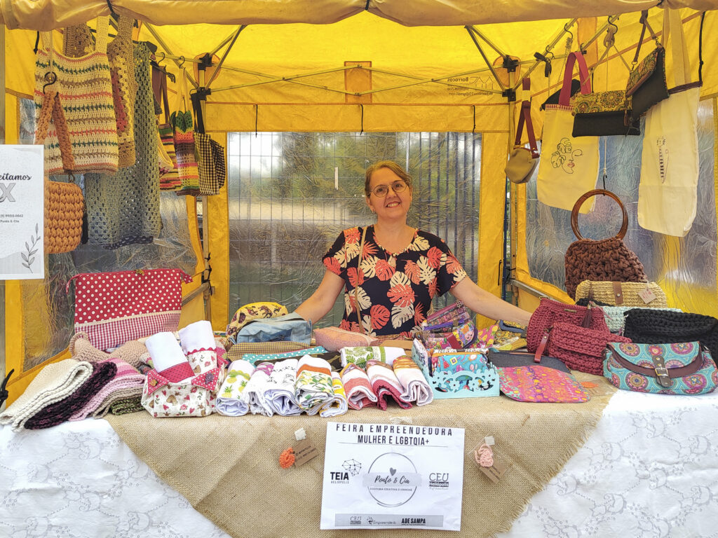 Criada em 2021, com dez inscritas, a Feira Cultural Mulher Empreendedora Heliópolis se expandiu para incluir a comunidade LGBTQIA+ e hoje se chama Feira Empreendedora Divas do Sol Heliópolis. A articuladora territorial, produtora de eventos e empreendedora Elaine Vital, que integra a equipe, à frente do evento (realizado no segundo sábado de cada mês), revela que o projeto ganhou fôlego nos últimos anos, com cerca de 70 participantes ocupando o calçadão do Largo de São João Clímaco, na zona Sul de São Paulo. “Temos barracas de artesanato, moda, gastronomia e diversos serviços, como massagem, acupuntura e leitura de tarô. Nossa maior potência é essa união, nos juntamos para nos completarmos. O que cada pessoa tem de melhor pode servir de ajuda para outra que está defasada”, acredita Vital, que também coordena encontros mensais sobre empreendedorismo no espaço TEIA Heliópolis, dentro do Centro Educacional Unificado (CEU) do bairro.