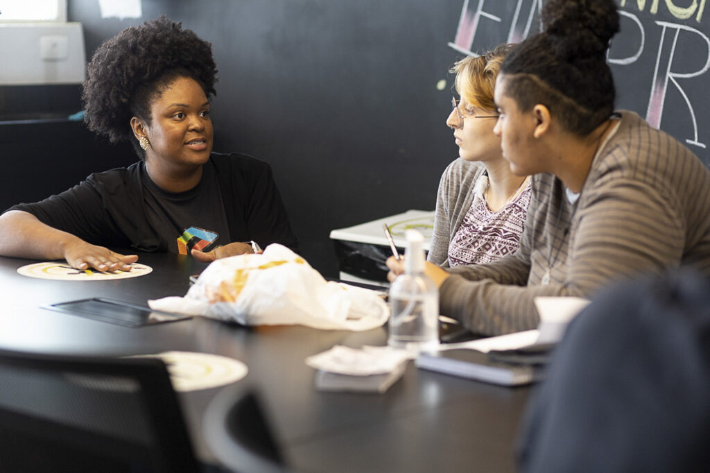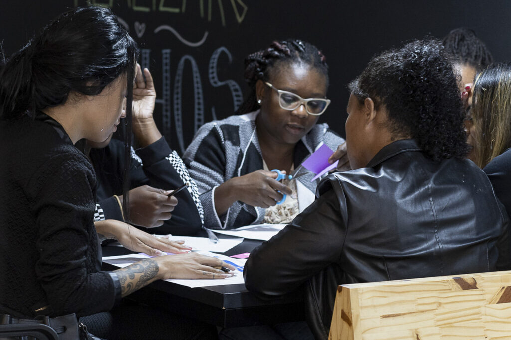 Nessas reuniões, cada participante fala sobre o próprio negócio, suas habilidades, necessidades, dificuldades e o que está fazendo para driblá-las. “Há quem cuide das redes sociais de colegas por terem mais facilidade no ambiente digital. Além disso, no fim de 2022, dois empreendimentos de bem-estar se uniram para criar um terceiro, que comercializa produtos e serviços de beleza e saúde para empresas”, exemplifica Elaine Vital. A empreendedora também atende a pedidos das(os) alunas(os) para falar sobre temas como marketing digital, mídias sociais e aplicativos de negócios, convidando parceiros que ministram cursos, palestras e oficinas.