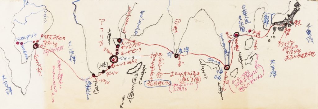 Cartografia do deslocamento de Takeo Sawada do Japão até o Brasil. Foto: acervo da família / reprodução: Paulo Miguel.