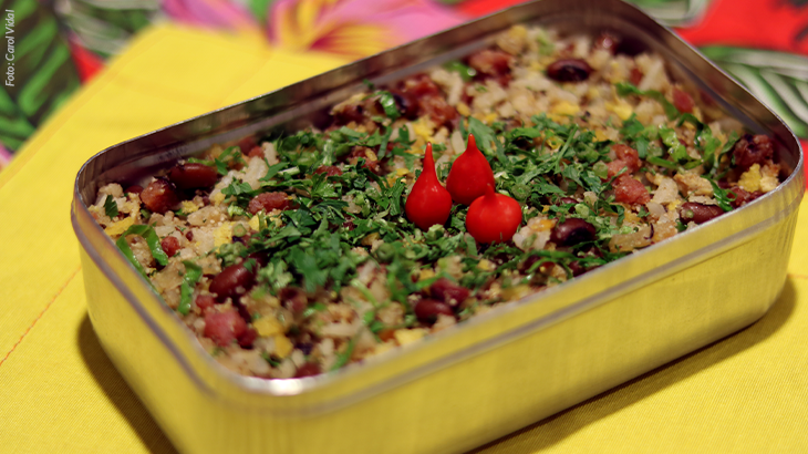 Farofa de filhote com farinha Uarini e banana pacovã – Sesc Carmo