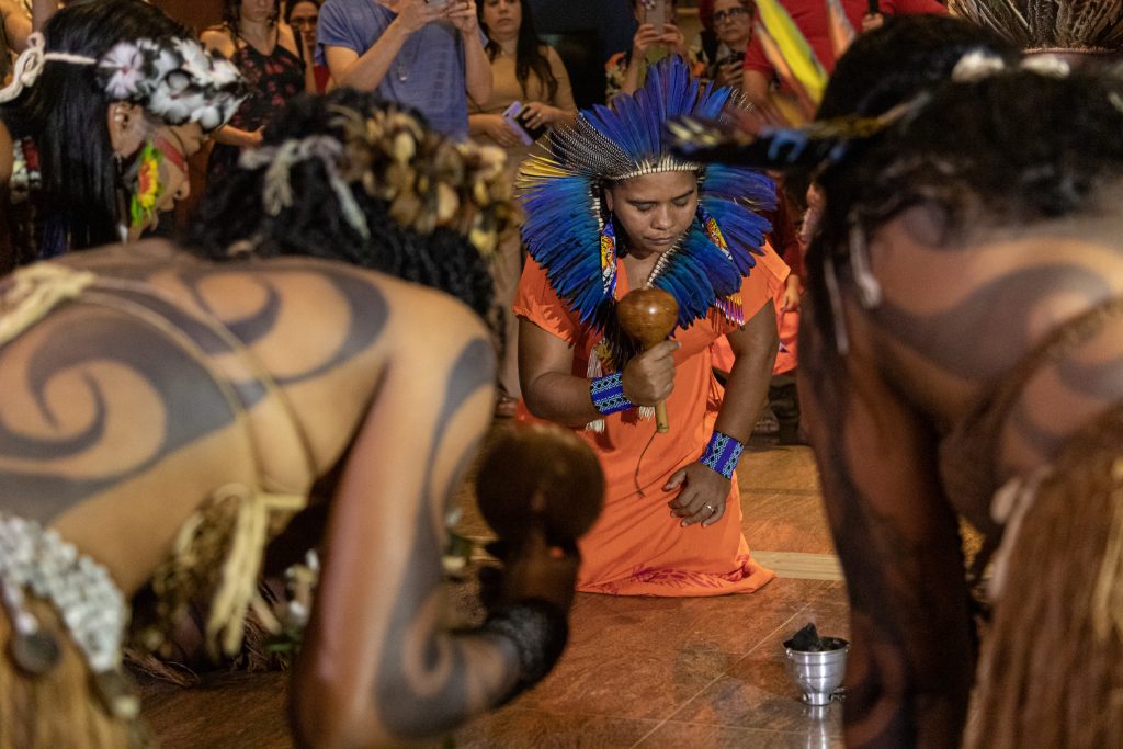 Após a apresentação, Célia ressaltou o valor do trabalho coletivo envolvido na realização da mostra, e celebrou a possibilidade de o público local vivenciar de perto essa experiência artística: “Não precisa atravessar o oceano pra que você possa estar na presença do manto, para aprender e entender essa tecnologia. Aqui está próximo e você pode observar de perto esse conhecimento que é uma assinatura Tupinambá”.