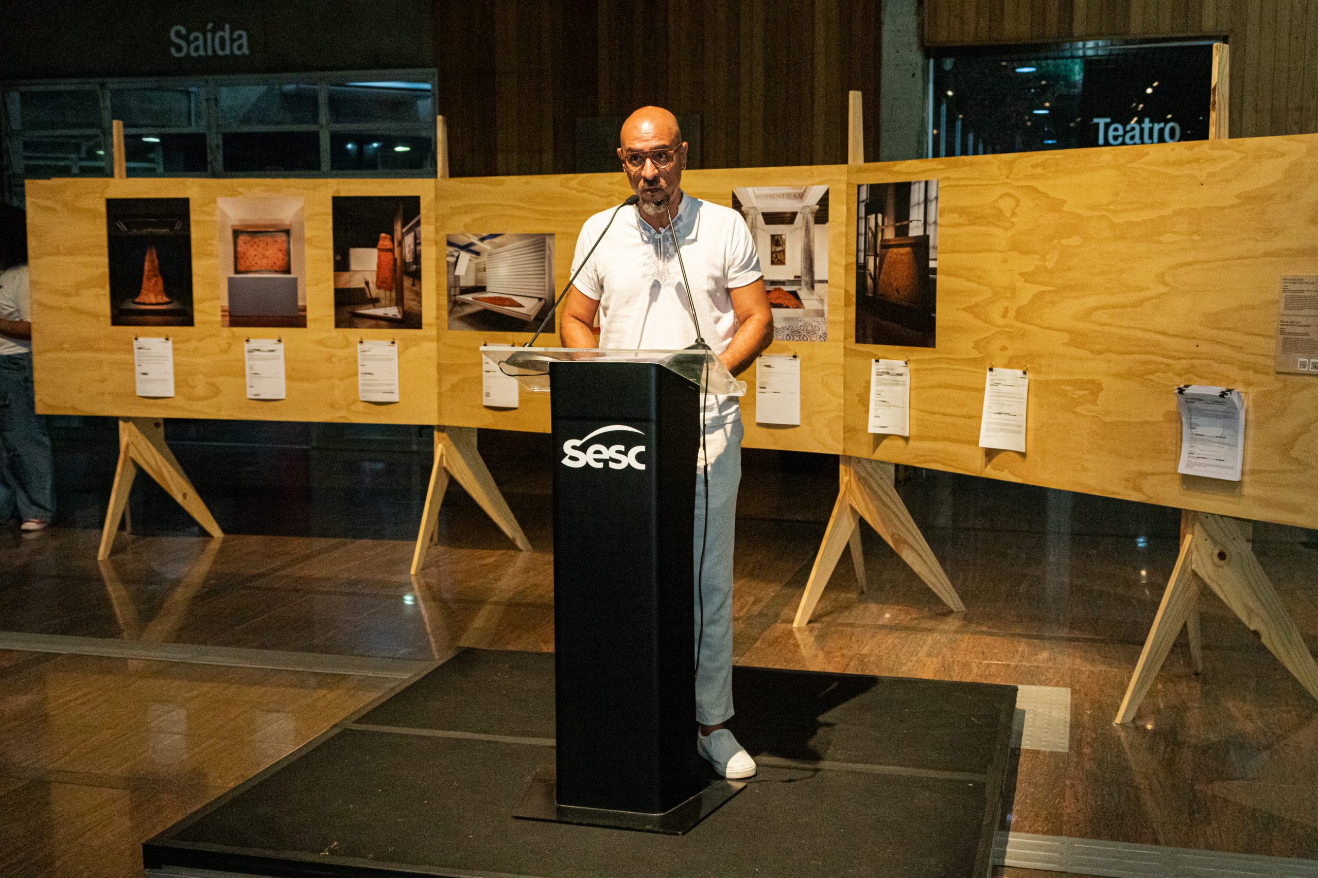 Thiago Freire, gerente do Sesc Rio Preto, fazendo fala na abertura da exposição (Foto Luiz Áureo)