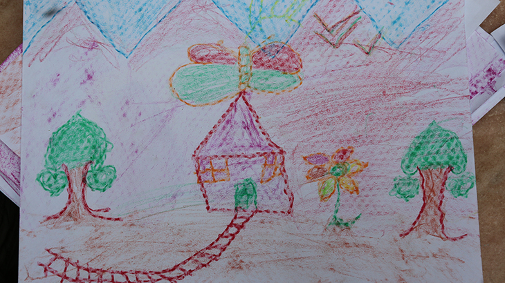 É impressionante como muitas crianças querem brincar de casinha, de construir casinhas, de convidar todos para conhecerem suas casas. Elas desenham as suas casas destruídas e, com o passar dos dias, desenham as casas onde viviam e, logo em seguida, as casas que gostariam de ter. Uma casa mais linda que a outra. Percebi que em muitos casos, eram as crianças que queriam pintar as barracas onde viviam, deixá-las mais coloridas!