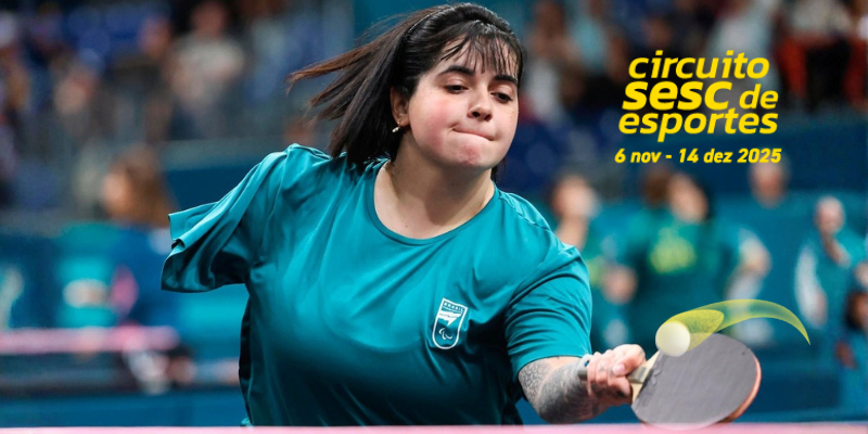 Entre os dias 6 de novembro e 14 de dezembro, acontece a primeira edição do Circuito Sesc de Esportes 2025. A mesatenista Bruna Alexandre é uma das 13 atletas que participam do projeto, que percorrerá 36 cidades do interior, litoral e Grande São Paulo, promovendo o movimento e o acesso à prática esportiva em diversas modalidades.