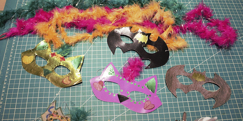 Os participantes farão suas próprias máscaras inspiradas em animais para brincar nos dias de carnaval, confeccionadas com recortes de papeis coloridos.