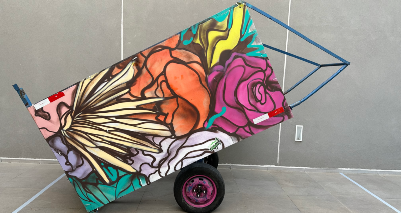 A intervenção “Carroça Catarina” mostra o resultado da ação do artista Rim Chiaradia no Projeto Pimp My Carroça no ano de 2021 sobre o equipamento de trabalho da catadora Anne Caroline. Proposta pela bióloga e embaixadora do Lixo Zero Brasil, Natasha Itai, a exposição tem como principais objetivos a reflexão sobre o consumismo atual, a visibilização e a valorização dos catadores e catadoras de resíduos sólidos enquanto agentes de promoção ambiental e o fornecimento de informações e serviços municipais úteis sobre gerenciamento de resíduos (Coleta Seletiva, Cooperativas de Triagem de Resíduos Recicláveis, PEV, Compostagem, etc) para a população local.