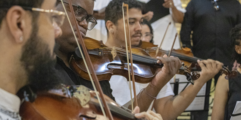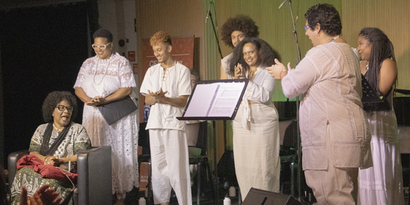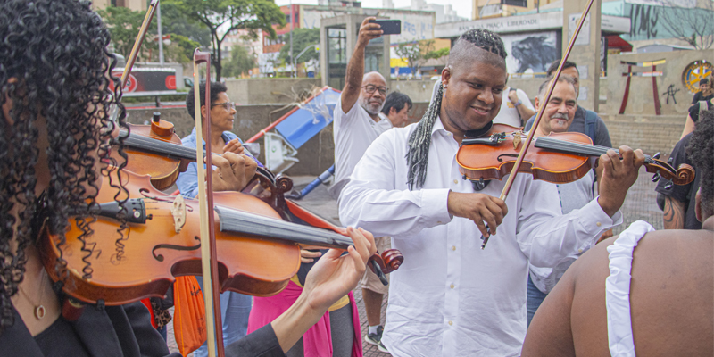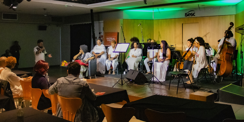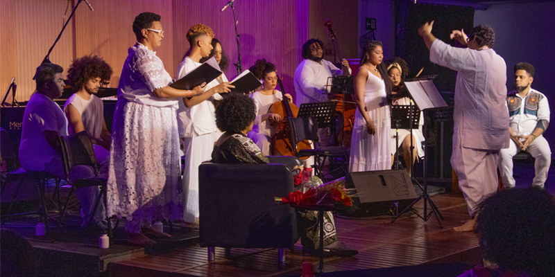 A apresentação reuniu músicos da OFAN – Orquestra de Formação Alberto Nepomuceno, as solistas Luana Bayô, Marly Montony e Ayo Tupinambá, além de coro e percussão, em quatro arranjos inéditos que uniram samba e música de concerto para celebrar a memória negra da cidade de São Paulo.