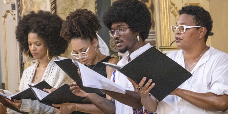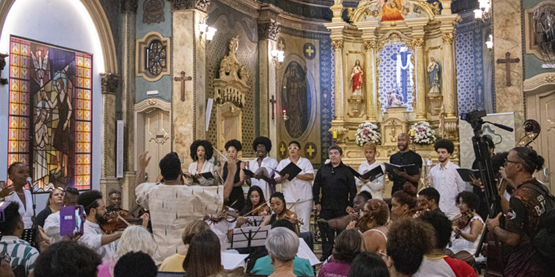 Com curadoria do jornalista e pesquisador Felipe Brito, as formações jogaram luz às narrativas de memórias negras da cidade, por meio de síntese entre música de concerto e as tradições de negritude, transitando entre samba, terreiros, gospel e canto.