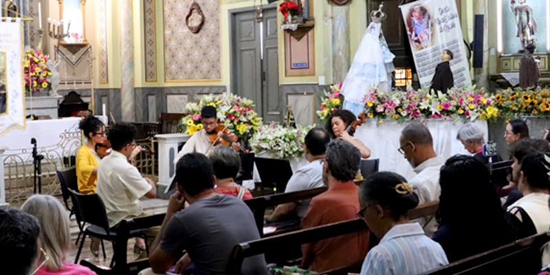 Para o concerto inaugural tivemos, no último dia 16 de julho, às 13h, na Igreja Nossa Senhora da Paz, o grupo Ubuntu Ensemble, coletivo de musicistas negras(os) do Brasil em um concerto memorável que apresentou as sonoridades das tradições de matrizes africanas em proposta camerística.