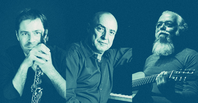 Show centrado em composições autorais e clássicos, como Santos Reis e Chorinho pro Sion, reunindo três grandes nomes da música instrumental brasileira.