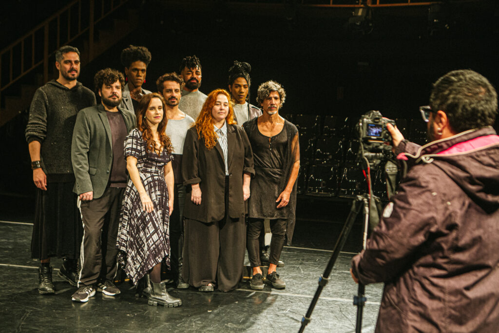 “O teatro é o lugar do encontro, da elaboração de memórias, da reflexão. Epifanias são geradas através desse encontro presencial e único e, apesar do evento em si não se repetir, ciclos da nossa História tendem a se recontar, se reiterar e se espelhar. Temos como exemplo recente, o vilipêndio e desmantelo da nossa Cultura no desgoverno Bolsonaro, que flertou com o fascismo. Portanto, vimos a necessidade de valorizarmos as/os artistas e a própria arte em si, traçando um paralelo com o fazer teatral. Propomos também um jogo para a plateia, para que ela possa pensar em que sociedade prefere viver e se faz algo para modificá-la”, explica Inez Viana.