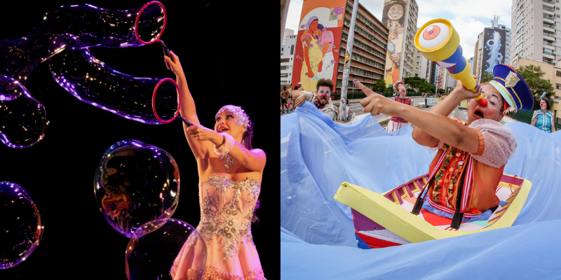 A programação inclui atividades voltadas especialmente para as crianças e famílias, como o espetáculo Entre Bolhas e Borboletas — em que a artista Patty Pantaleão manipula bolhas de sabão — e Goupil & Kosmao, apresentação que une mágica, teatro e manipulação de marionete, no palco do Sesc Bom Retiro.