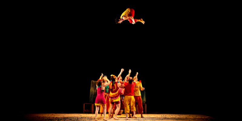 Por meio de uma trama narrativa poética, atravessando ritmos, brincadeiras e danças brasileiras, o espetáculo com 7 acrobatas se desenvolve norteado pelas cores e movimentos de expansão e contração observados na energia cíclica da natureza. Um espetáculo circense para festejar a potência do encontro recorrendo às acrobacias coletivas e à mão a mão.