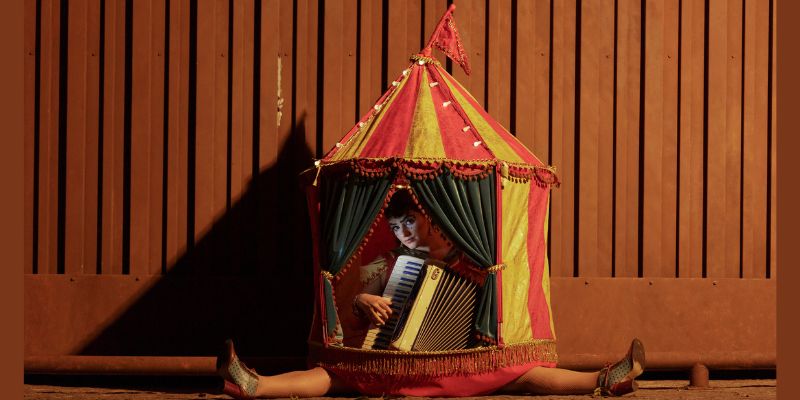 Vestida de picadeiro e lona de circo, a artista Lívia Mattos realiza um mini-concerto ambulante, com sua inseparável sanfona. É uma intervenção em forma de instalação sonora que une o universo fantástico do circo com a harmonia da música: um delírio ambulante!