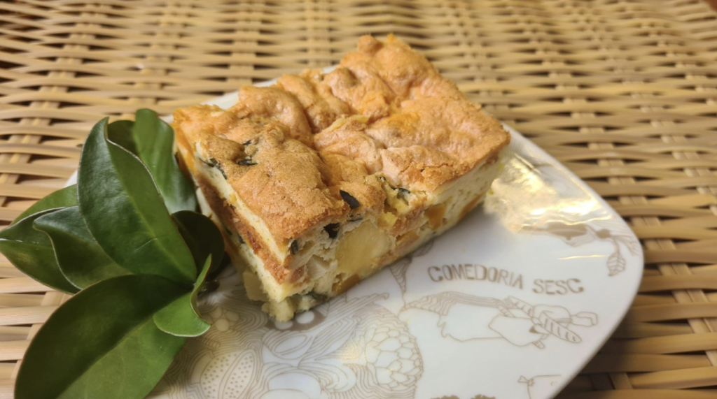 Torta de mandioca com palmito, abóbora e ora-pro-nóbis. Foto: Beatriz Romanello