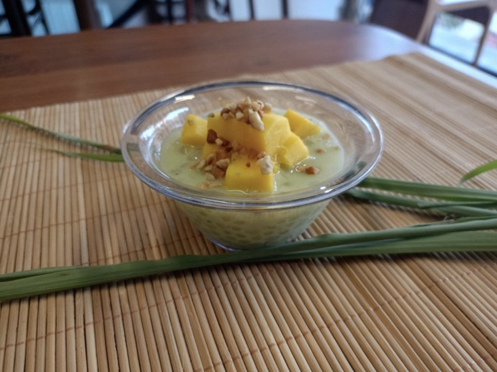 Sagu com leite de coco, capim-santo, manga e xerém de castanha-de-caju. Foto: Estevão Silveira