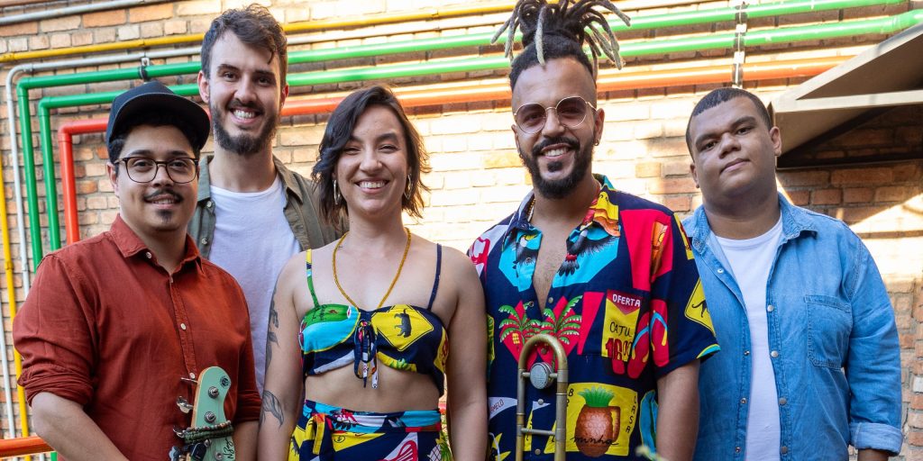 Show (cortejo) inédito NA FOLIA, que reúne clássicos do carnaval brasileiro e músicas instrumentais autorais da dupla formada pelos multi-instrumentistas Grazi Pizani e Pedro Moreira. Parceiros de carreira e de vida, o duo paulistano sobe ao palco munido de trompete e trombone, e é acompanhado pelos musicistas Leonardo Gomes no cavaquinho, Matheus Marinho nas percussões e Juliene Bellingeri no saxofone.