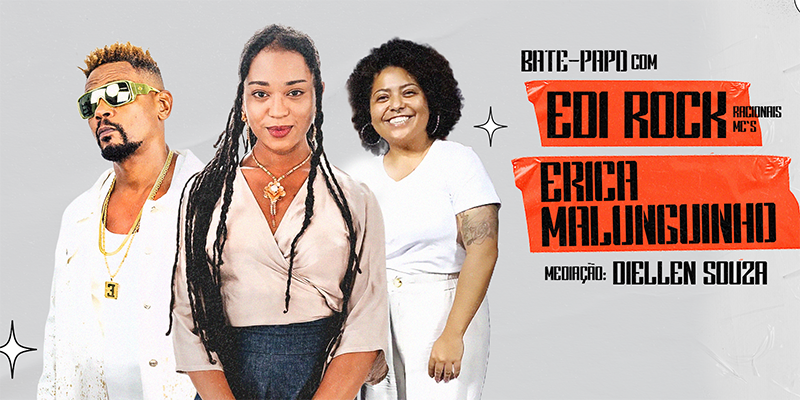 Já Edi Rock, é rapper, compositor, DJ e produtor musical. Ícone do rap nacional e membro fundador dos Racionais MC’s, carrega mais de três décadas de influência na música e na cultura urbana. Cria da Zona Norte (SP), em meados dos anos 80 conhece KL Jay, com quem forma uma equipe de DJ’s realizando eventos na região. Em 88 funda o Racionais Mc’s com Mano Brown, Ice Blue e KL Jay, considerado o maior grupo de Rap do Brasil.