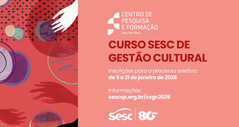 Todas as comunicações referentes ao processo seletivo serão enviadas exclusivamente ao e-mail informado na ficha de inscrição. Fique atento a sua caixa de spam. Mais informações pelo e-mail: gestaocultural.cpf@sescsp.org.br