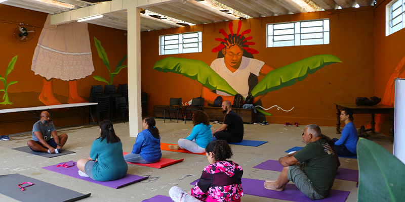 No mês de abril, os funcionários do SBIBAE tiveram a oportunidade de participar pela primeira vez de uma visita mediada na unidade. Apesar do sábado chuvoso, o grupo chegou às 9h da manhã e iniciou a experiência com a atividade Movimento Consciente – um conjunto de práticas que integram corpo e mente, trabalhando a expressão corporal e conectando o indivíduo ao coletivo, à sociedade e à natureza.