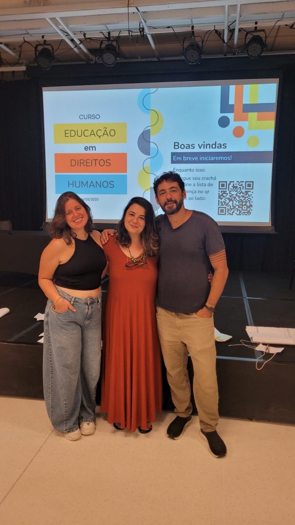 De 25 a 27 de março de 2025, o curso Educação em Direitos Humanos reuniu educadores, profissionais da cultura e da comunidade para refletir, sentir e criar possibilidades de transformação. Estruturado em três encontros interativos e complementares, o curso foi conduzido por três educadores de longa estrada e profunda escuta: Hamilton Harley, Renata Aquino e Luiza Souto, membros do Instituto Vladimir Herzog, referência nacional na promoção dos direitos humanos por meio da educação e da cultura.