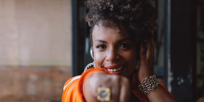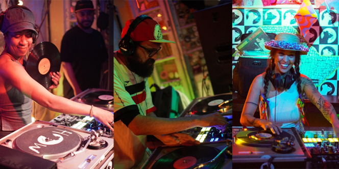 DJ Miria Alves traz em seu set músicas dançantes dos anos 70, 80, 90, 2000 e atuais com toca-discos e discos de vinil.