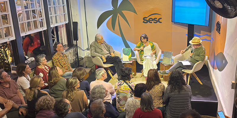 Na sequência, o jornalista Fernando Gabeira e o fotógrafo João Farkas debateram, com mediação de Maria Zulmira de Souza, as belezas e os desafios da Costa Norte brasileira – um dos trechos mais biodiversos e menos conhecidos do litoral nacional. As imagens de Farkas, registradas em um novo livro pelas Edições Sesc, e a experiência política e ambiental de Gabeira convidaram o público a refletir sobre a urgência de políticas públicas de proteção ambiental integradas às realidades socioculturais da região.