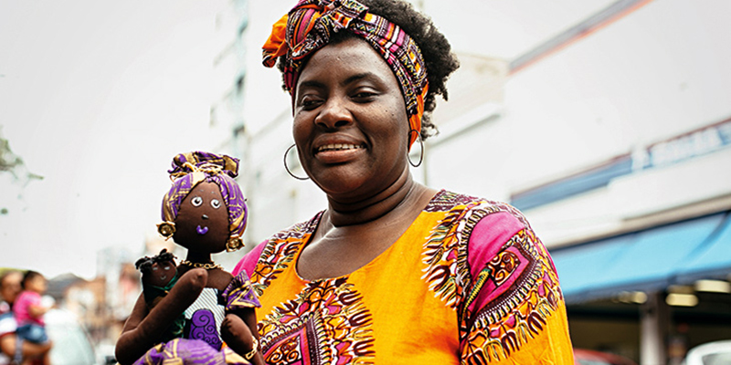A boneca que chamou a atenção de Rénée no evento, hoje uma de suas peças principais, era mais conhecida do que ela poderia supor. Chamadas de Abayomis, elas eram originalmente feitas por mulheres negras que vinham da África para serem vendidas como escravas na América – durante o trajeto, a fim de acalmar seus filhos e filhas, essas mulheres rasgavam pedaços de suas roupas e confeccionavam os pequenos objetos para distrair as crianças dos horrores que presenciavam. “Comecei a ir atrás disso, e aí descobri que eram muito populares. Quanto mais eu pesquisava, mais eu percebia que elas eram um símbolo de resistência”, afirma a artesã, que aprendeu o passo a passo com a colega da feira de artesanato de Manaus. Daí em diante, passou a só fazer bonecas negras, de todo tipo, “para que as crianças tivessem consciência de que as bonecas não são apenas brancas, para que se sintam confiantes com sua identidade, e assim educar sobre a nossa cultura”.