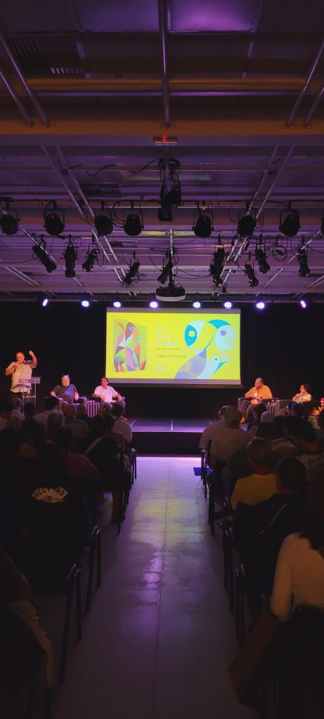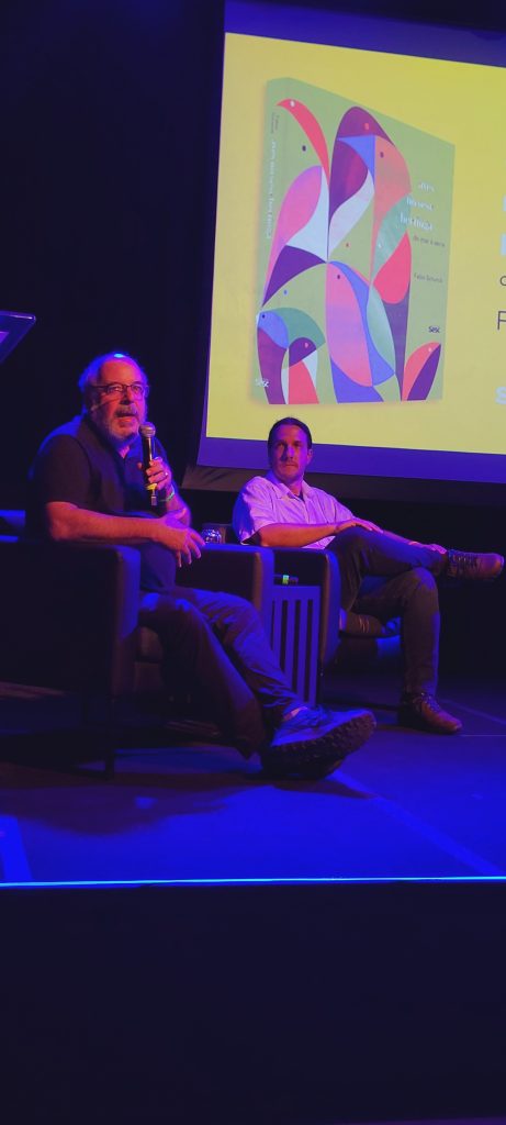 No dia 8 de maio de 2025, às 20h, no Espaço Cênico do Sesc Bertioga, aconteceu o lançamento do livro “Aves no Sesc Bertioga: do mar à serra”, em 3ª edição revista e ampliada. O evento contou com um bate-papo seguido de sessão de autógrafos com o ornitólogo e autor do livro, Fabio Schunck. Também participaram da conversa o pesquisador Claudio Maretti, a observadora de aves Zoraide Alcântara, e a mediação foi do Marcelo Bokermann, do Sesc Bertioga.