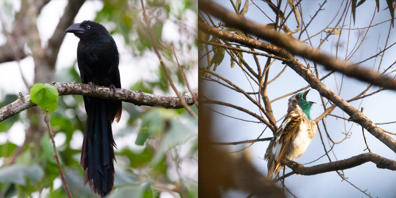 Da esquerda para a direita: Anú Coroca (Crotophaga major) | Araponga (Procnias nudicollis)