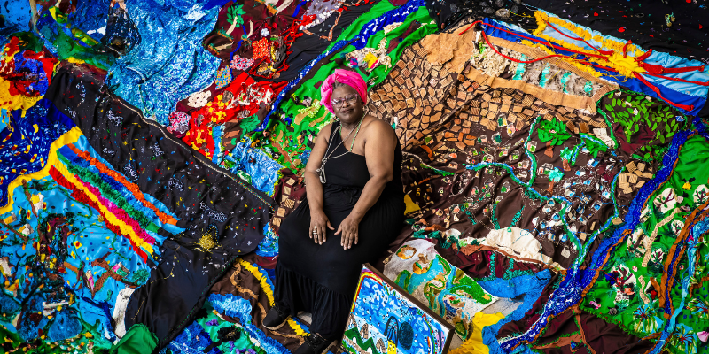 Apesar de já ter exposto em centros culturais e escolas por todo o estado de São Paulo, o reconhecimento de sua arte veio com um convite para expor na Bienal de Arte Contemporânea de Liverpool, no Reino Unido, ano passado. Um dos trabalhos expostos recebe o título de Dança com a Morte no Atlântico. Nele, a artista representa a vida e a morte: um memorial para todos os que perderam suas vidas durante o tráfico transatlântico de pessoas escravizadas. Ela também expôs sua coleção Orixás, obras têxteis guiadas por conversas espirituais da artista. “Eu não bordo sozinha, bordo com os Orixás, são eles que me guiam”, afirma. “Eles me dizem o que fazer, os desenhos são das vozes que eu ouço.”