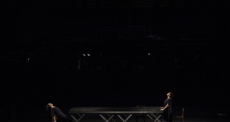 Caetano W. Galindo: Eu entreguei uma versão dessa peça em março e eu, estúpido, pensei: “entreguei o texto”. Isso que está aqui agora, acho que é a versão doze ou treze depois daquela. Entre reescritas menores e reescritas totais. A peça diminuiu muito de tamanho, alterou de ordem, trocou personagem, inclusive trocou a psicologia de uma para a outra em vários momentos. A peça foi profundamente reescrita, alterada por percepções minhas quando eu vi alguma coisa, e muito por a Daniela dizer: “Olha, vamos olhar de novo para esse final. A Beth dizer: “Isso aqui está funcionando pior do que poderia”. E a gente foi reagindo a essas sugestões. E foi isso que me deixou especialmente satisfeito: o fato de que agora eu vejo um pedaço do ensaio e eu nem lembro. Fui eu que escrevi isso? Quando que eu escrevi isso? Tava na versão anterior e elas recuperaram para agora? Ou isso tinha caído, mas voltou? É super, super, super fascinante a ideia de que a assinatura do autor é bem menos presente do que em um poema, por exemplo.