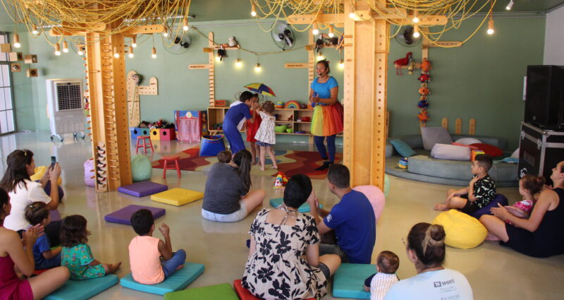 É um espaço interativo, que contempla a experiência da convivência, da diversidade e da subjetividade, com narrativas, estruturas e acervos brincantes que desafiam as habilidades e instigam a imaginação.