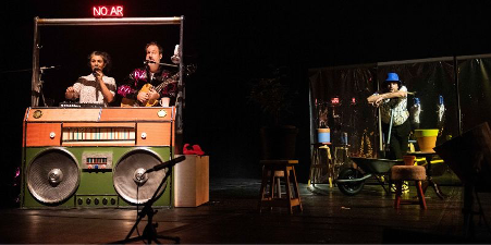 Já os músicos Paula Mirhan e Rui Barossi são responsáveis pela costura das cenas. As canções, com letras, guiam os espectadores pelos acontecimentos e criam uma sintonia entre quem está no palco e quem está na plateia.