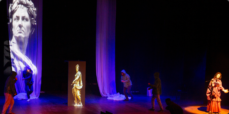 Publicada originalmente em 1599, a peça de natureza histórico-política escrita por Shakespeare recria a conspiração que levou ao assassinato do grande ditador romano Júlio César, bem como os seus desdobramentos. Passados mais de 400 anos, a contemporaneidade do texto é surpreendente, com personagens envolvidos em disputas de poder, intrigas, manipulações e traições. Em “Julius Caesar – Vidas Paralelas”, a dramaturgia propõe uma reflexão pertinente sobre questões sociais e políticas, entrecruzando a trama original de Shakespeare e as relações encontradas nos bastidores do processo criativo de uma companhia teatral fictícia com mais de três décadas de trajetória.