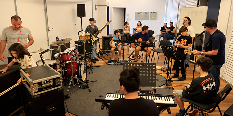 Depois de um período inicial de vivências e oficinas, realizado entre janeiro e fevereiro, a unidade inicia uma grade que convida participantes de diferentes idades a se apropriarem da música não apenas como técnica, mas como experiência compartilhada. A proposta tira o foco da performance individual para enfatizar o processo: tocar junto, ajustar, construir o som em conjunto.