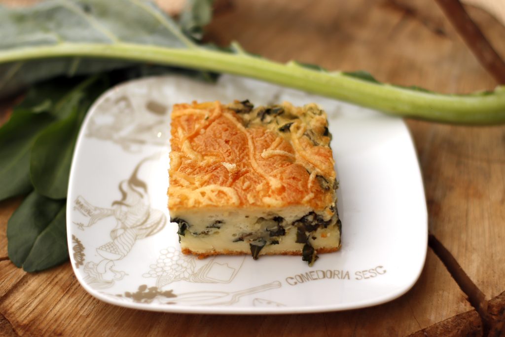 Massa: Farinha de trigo, amido de milho, fermento em pó químico, leite semidesnatado, óleo de soja, ovo pasteurizado, talos de couve-manteiga, azedinha, cebola, alho, parmesão e sal.