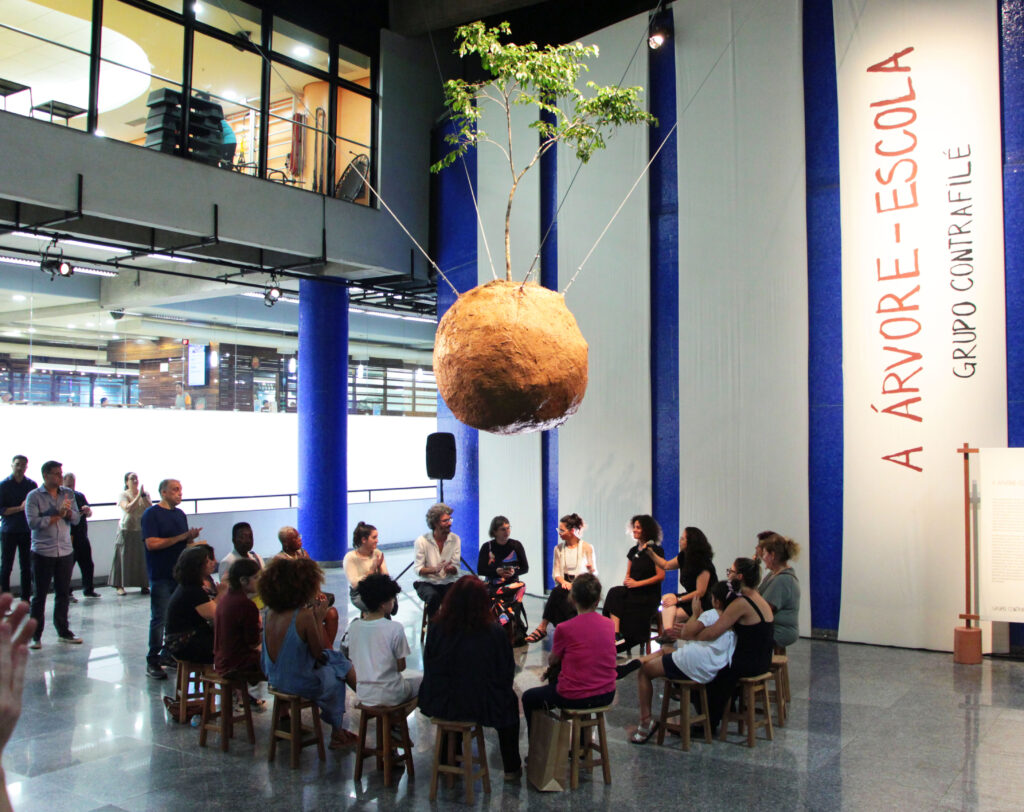 Inspirada na colaboração entre o grupo palestino Campus in Camps e a Rede Mocambos, uma rede nacional de quilombos, a Árvore-Escola nasceu em 2014 no contexto da 31ª Bienal de São Paulo, idealizada pelo grupo Contrafilé. Agora, em uma nova edição, essa obra ganha novas camadas de significado, enriquecida pela presença de pessoas engajadas em diversas lutas sociais que ecoam pelos territórios da Zona Norte.