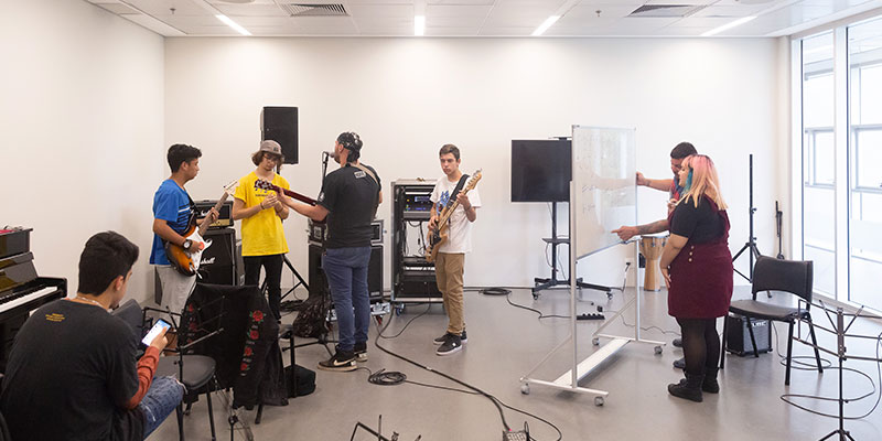Um espaço colaborativo para bandas e músicos praticarem, experimentarem e criarem juntos.