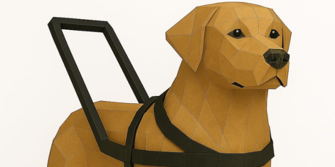 Construção colaborativa de uma escultura em papel do cachorro caramelo, símbolo popular da cultura brasileira, utilizando a técnica low poly, que cria formas tridimensionais a partir de superfícies geométricas planas.