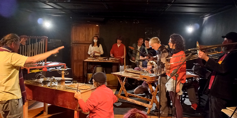 Com Adriano Castelo. Artista visual, educador e construtor experimental de instrumentos musicais.