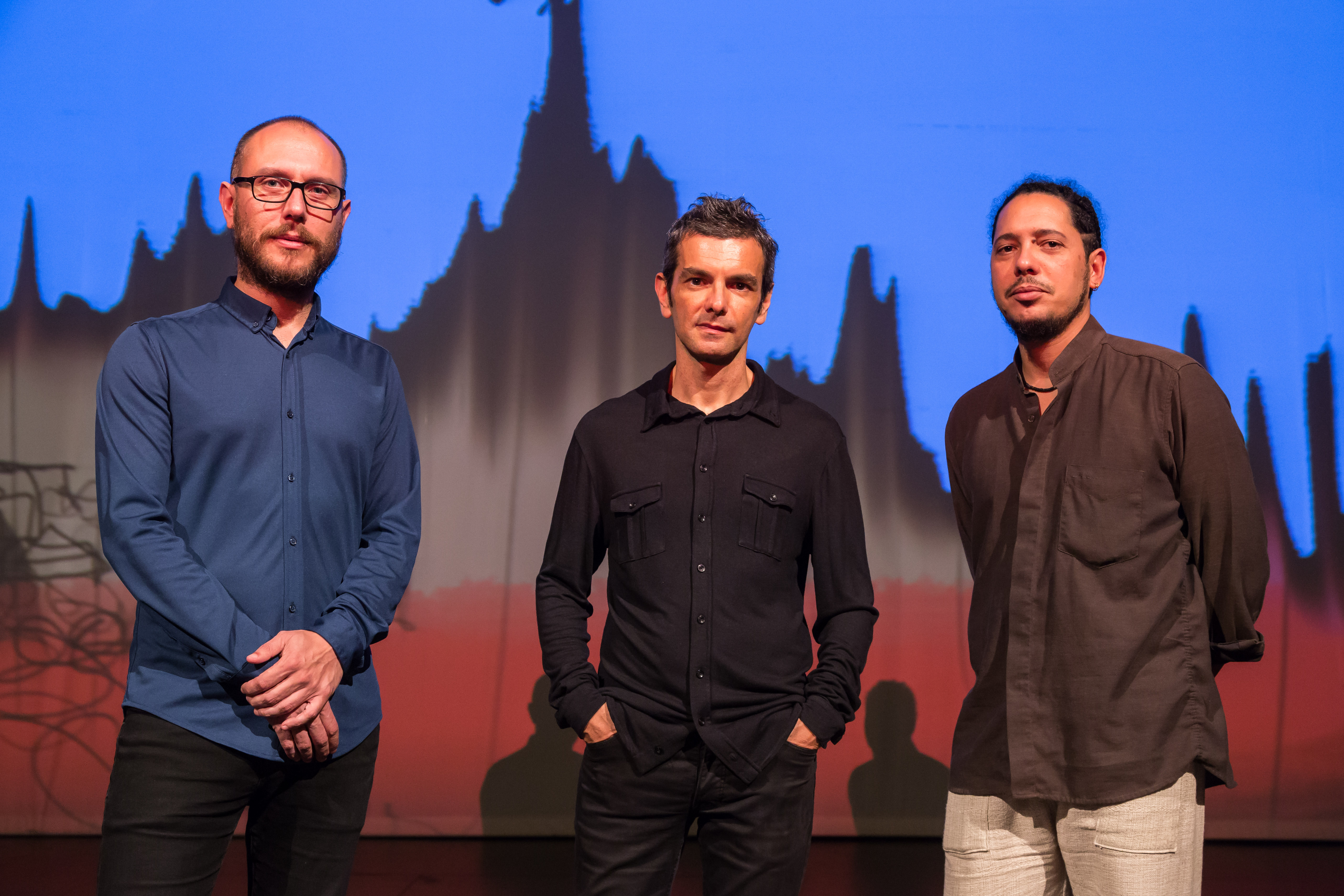 Sinopse: Este espetáculo é o encontro de três linguagens que se entrelaçam para nos contar uma história. Construção em tempo real de uma narrativa desdobrada em três dimensões – escrita, desenhada e tocada – seguindo uma estrutura prévia, mas aberta a todas as ocorrências no seu desenrolar. Jogo de tema e variação, contraponto e cumplicidade. Uma reunião de três criadores premiados, e só a título de exemplo, Ondjaki, foi vencedor do Prémio Saramago em 2013, com Os Transparentes; Filipe Raposo, recebeu o Prémio Fundação Amália Rodrigues para o seu primeiro disco First Falls; e António Jorge Gonçalves, Prémio Nacional de Ilustração 2014 com o livro Uma Escuridão Bonita.