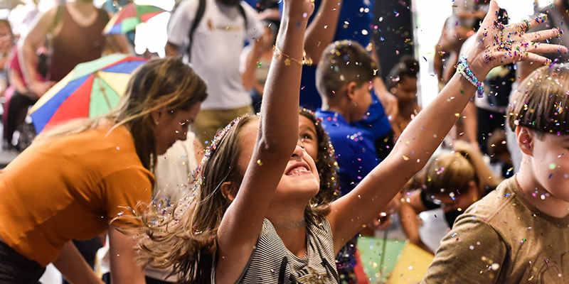 Prepare-se para quatro dias de muita diversão! Por aqui, vai ter marchinhas, cortejos, bailinho para os pequenos e até oficinas para soltar a criatividade e fazer sua própria fantasia ou até mesmo um instrumento de percussão.